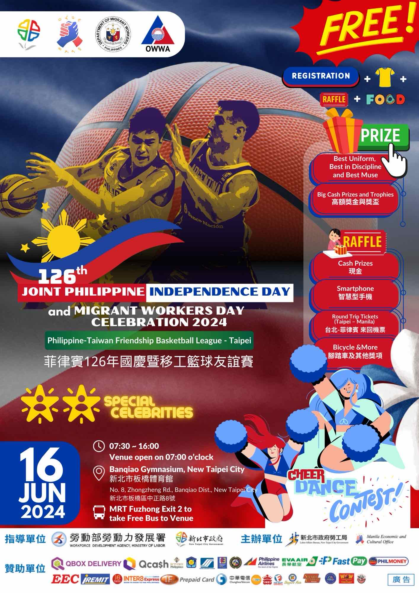 歡迎大家前來慶祝菲律賓126年國慶,並參與一場精彩絕倫的籃球友誼賽!讓我們一起感受菲律賓文化的熱情,支持各隊球員的努力與拼搏!