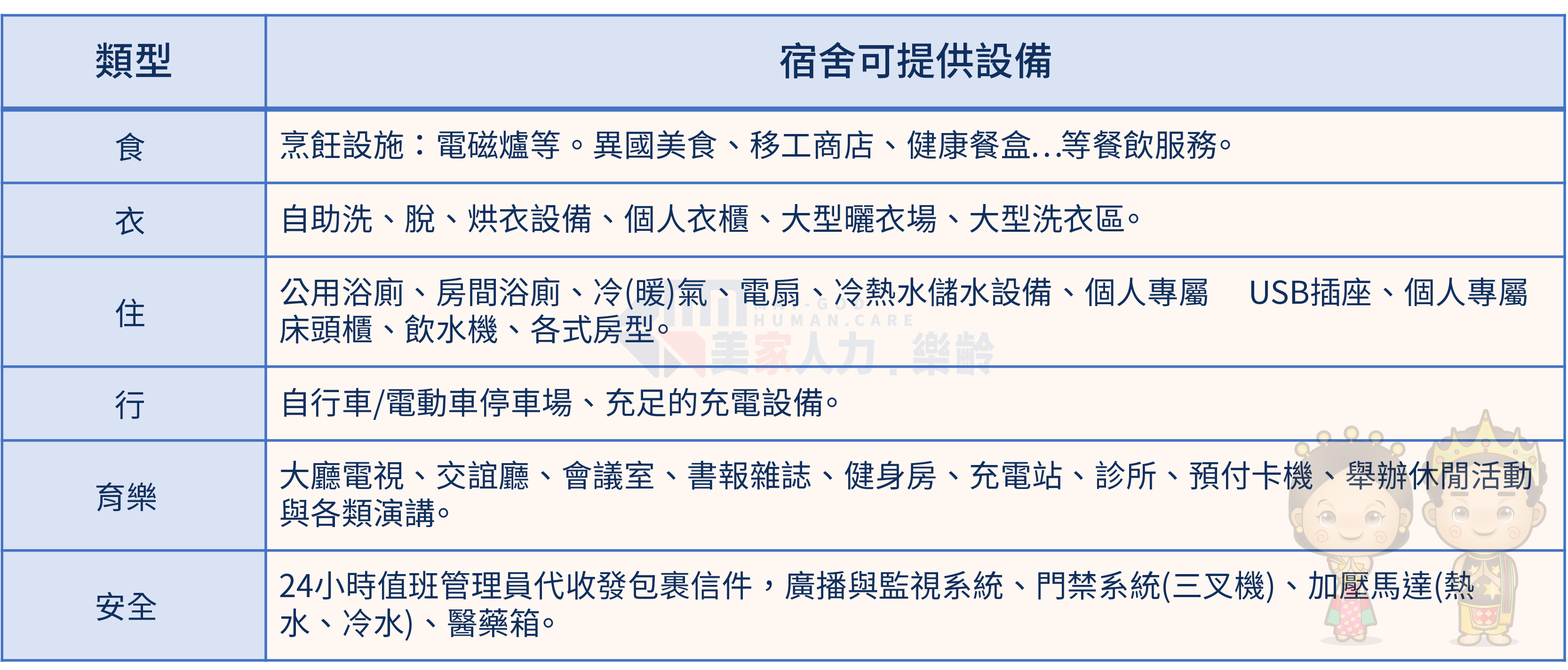 客製化服務:依客戶需求提供專屬設備,亦可量身訂做宿舍房型,例如單人房、雙人房、4人房等。