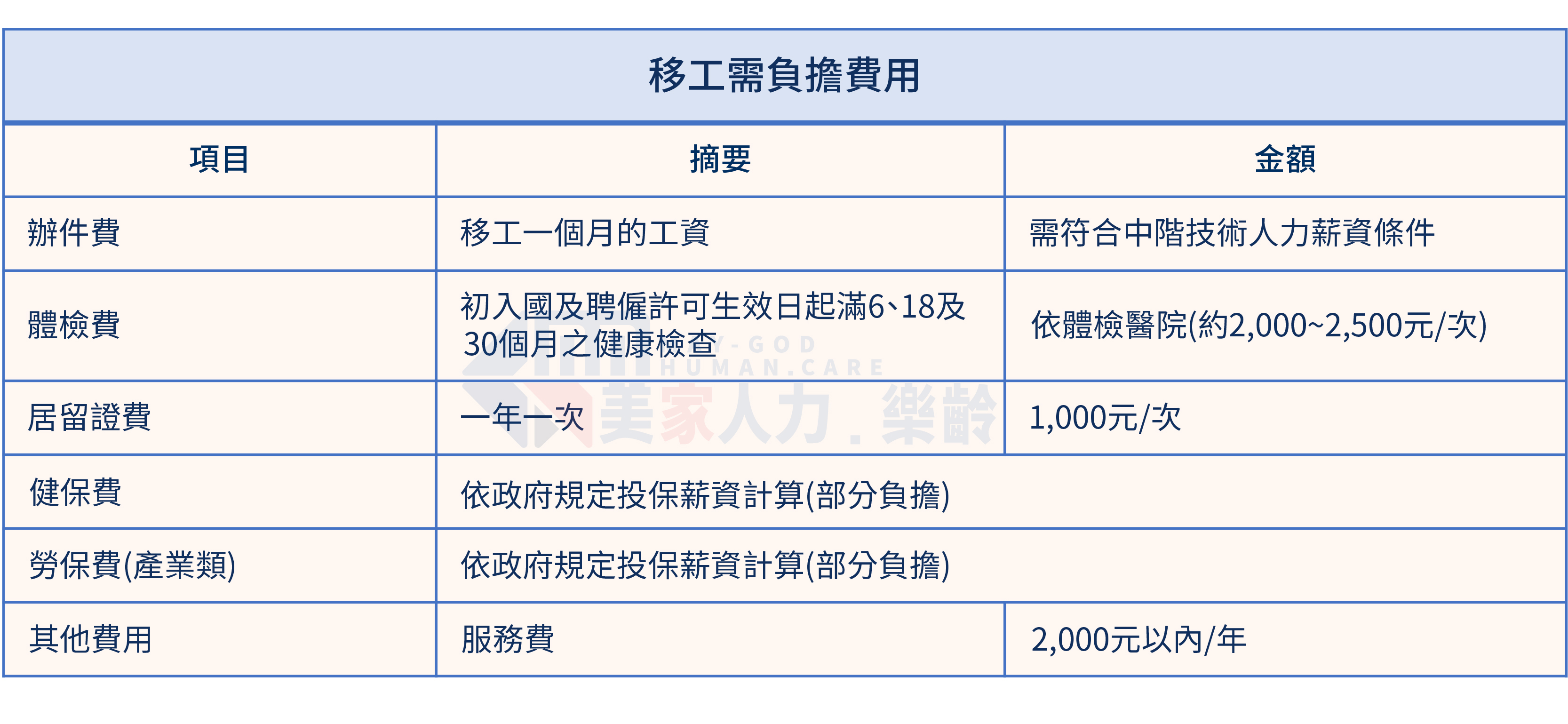 社福類:應同時符合我國語言測驗及相關教育訓練課程資格條件,但家庭看護工經常性薪資逾2萬6千元者,免技術條件。